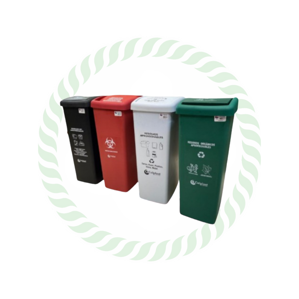 Su capacidad de 55 litros permite manejar grandes volúmenes de residuos, reduciendo la frecuencia de vaciado y mejorando la eficiencia operativa. Está disponible en colores normativos que facilitan la clasificación adecuada de los residuos, promoviendo una gestión responsable y alineada con las prácticas de reciclaje y sostenibilidad.